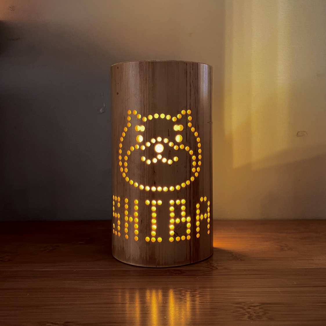 USBスイッチ付きライト(調光付き)は、光量が強い為、竹灯籠の高さ・柄の複雑さが増しても、灯した時に柄がハッキリと見えます。