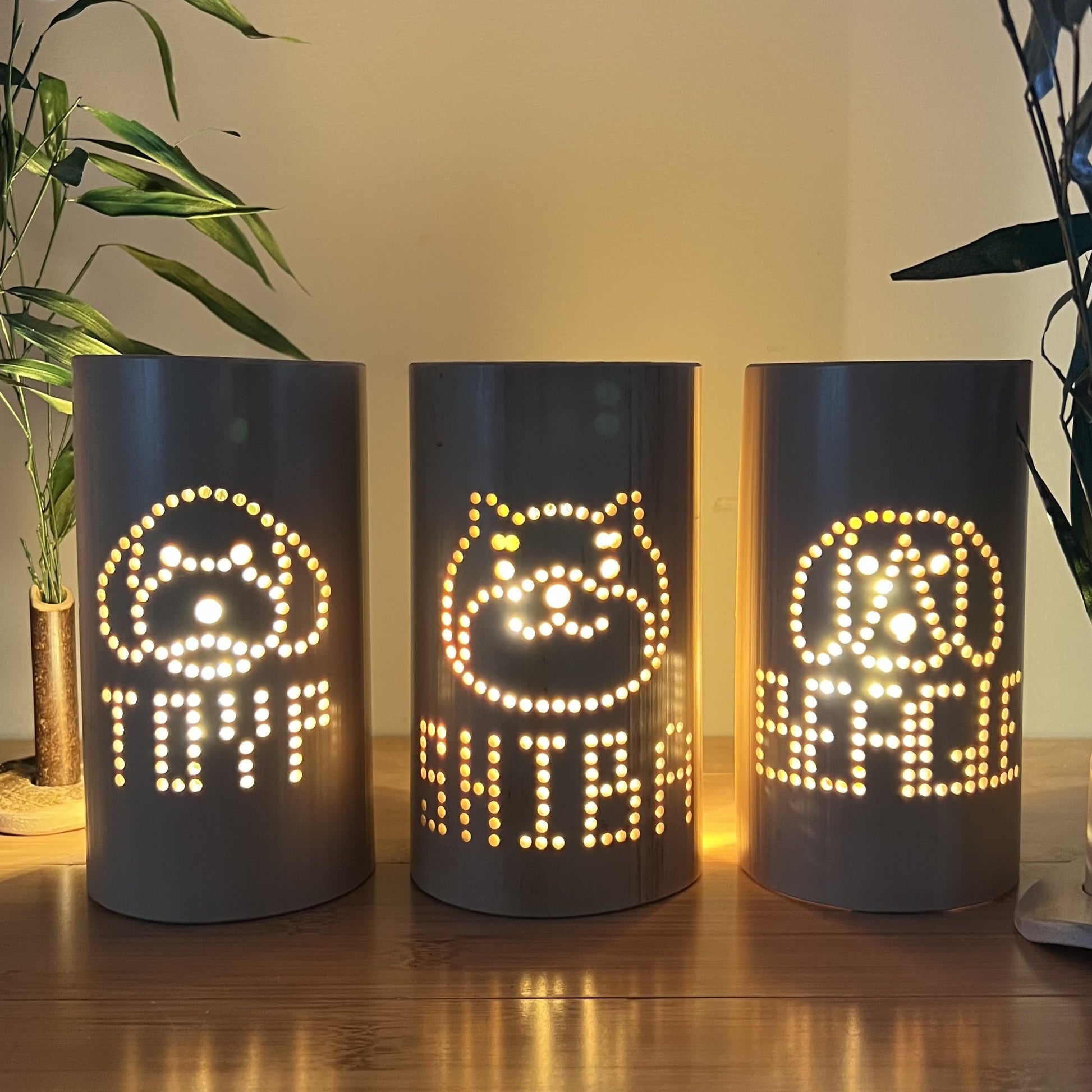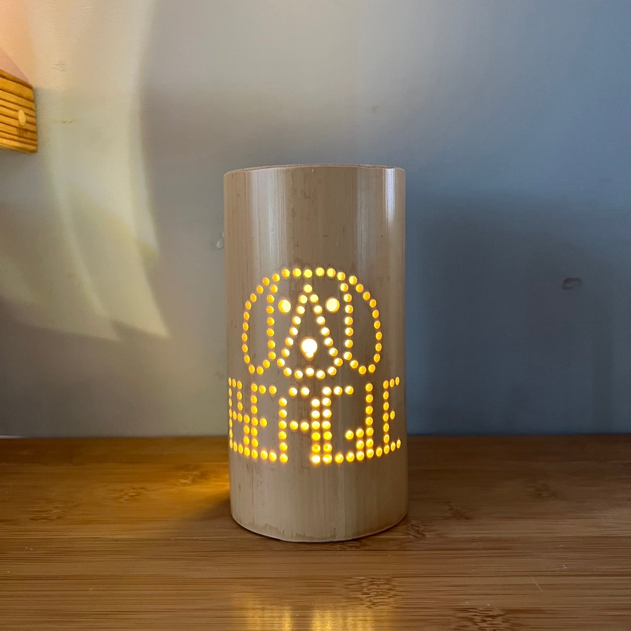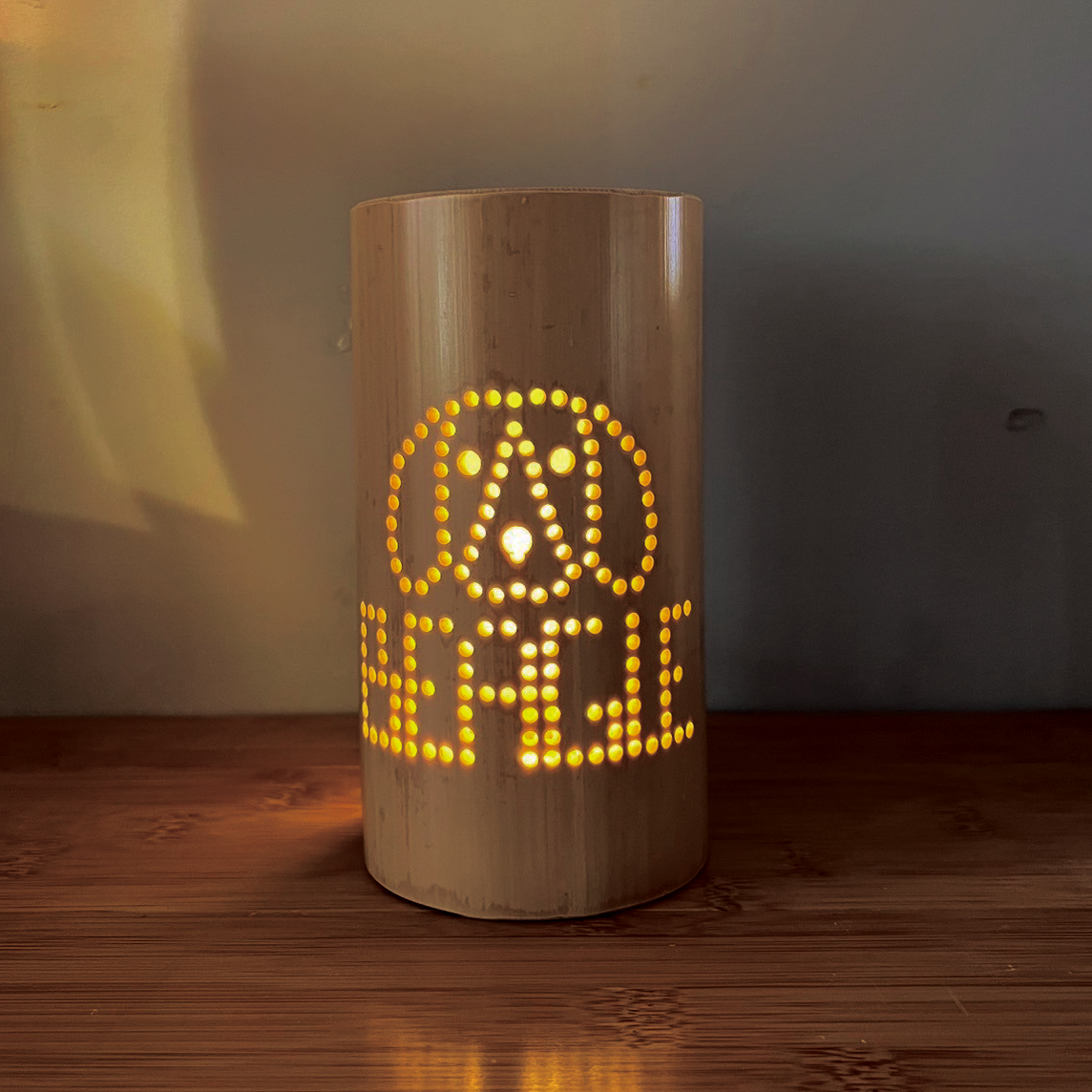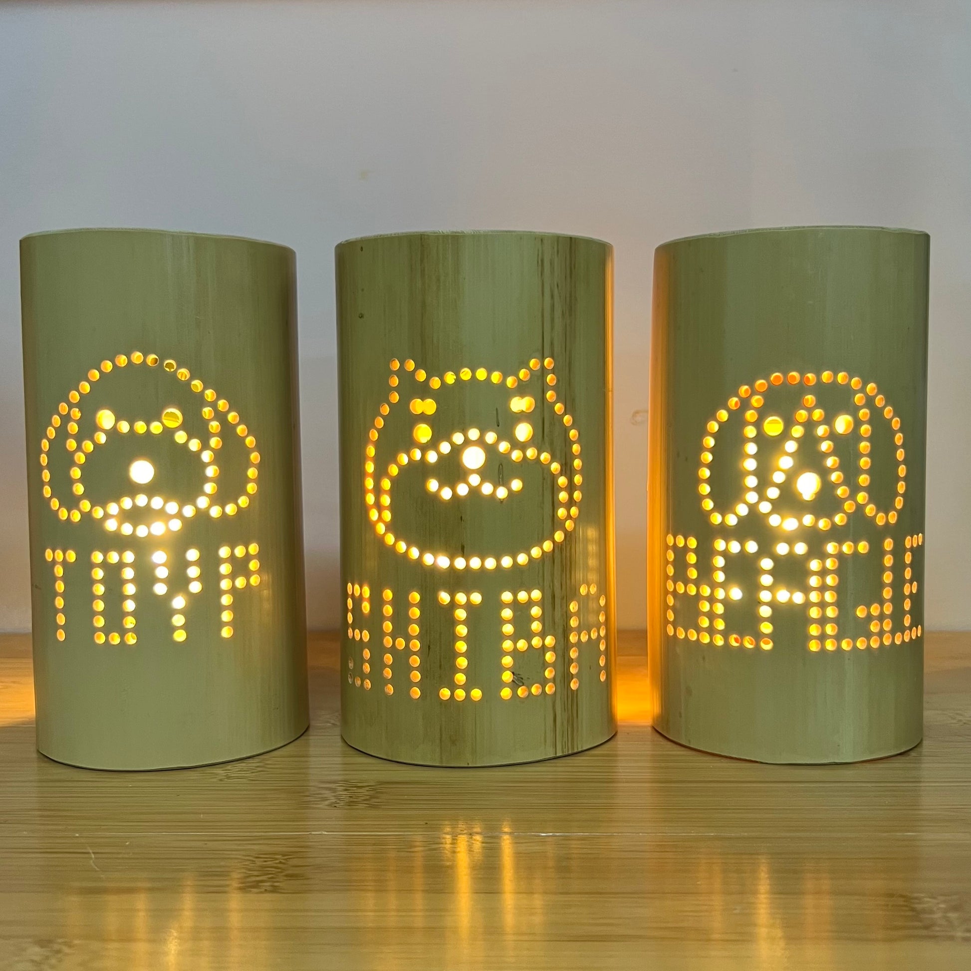 USBスイッチ付きライト(調光付き)は、光量が強い為、竹灯籠の高さ・柄の複雑さが増しても、灯した時に柄がハッキリと見えます。
