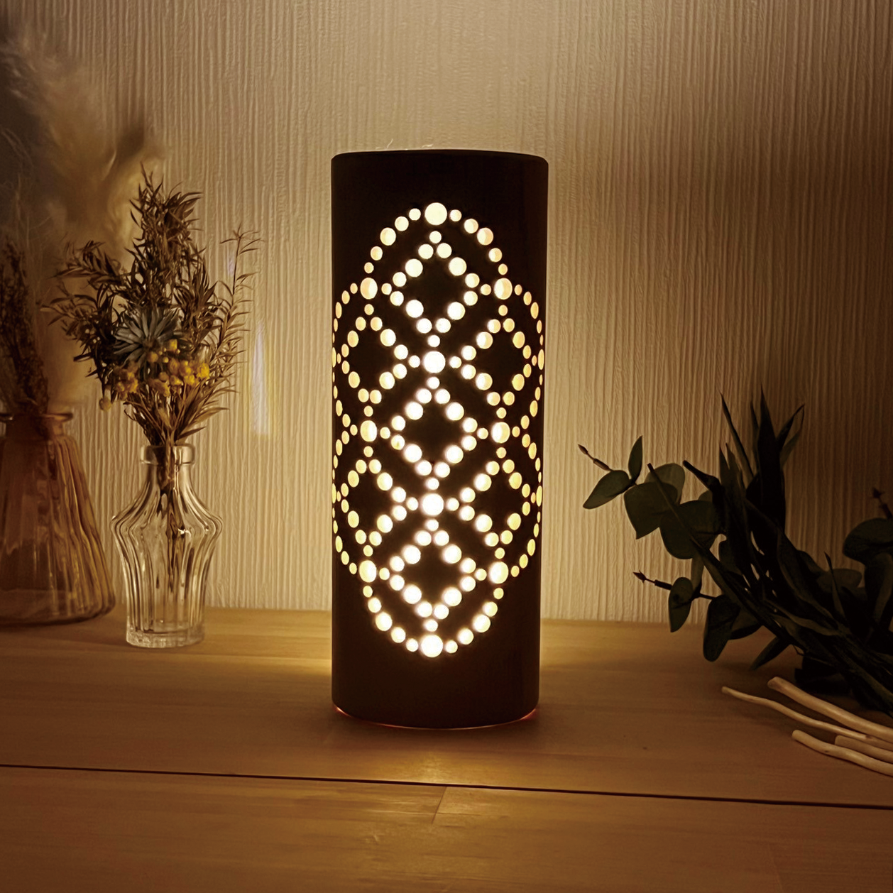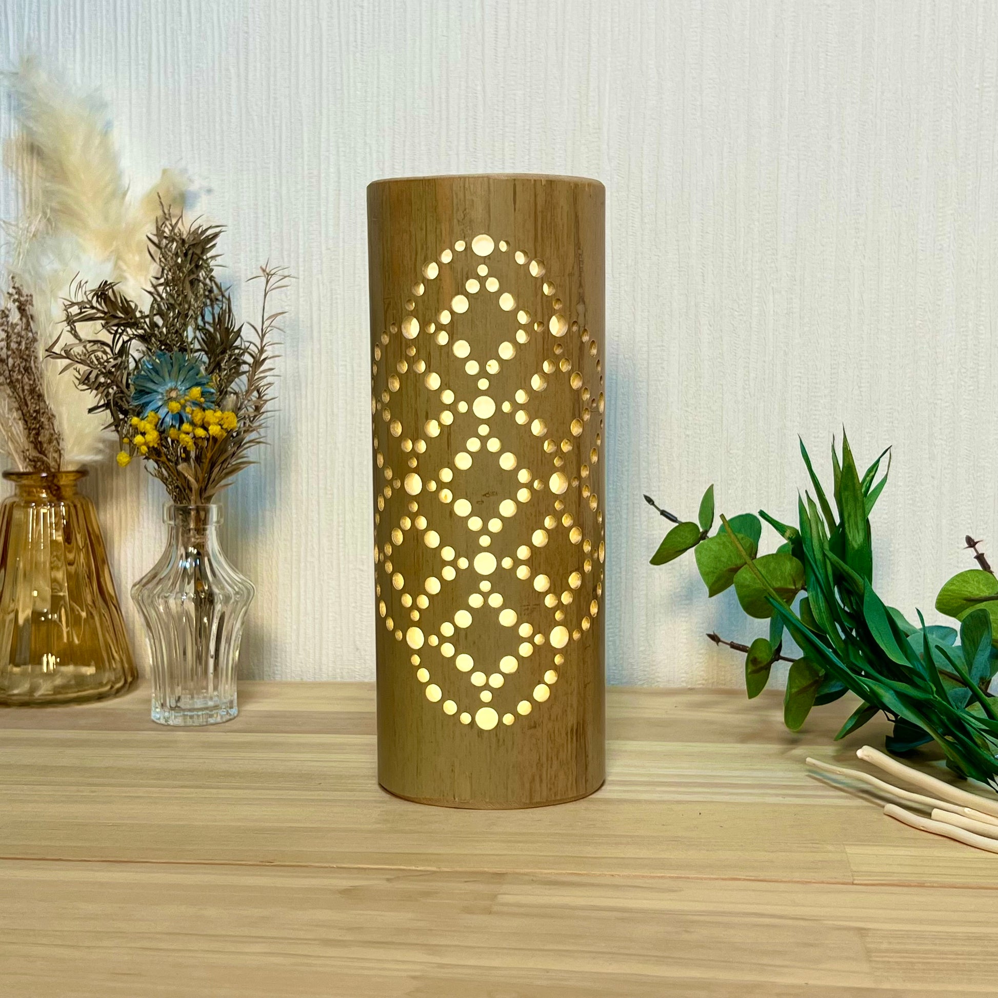 USBスイッチ付きライト(調光付き)は、光量が強い為、竹灯籠の高さ・柄の複雑さが増しても、灯した時に柄がハッキリと見えます。