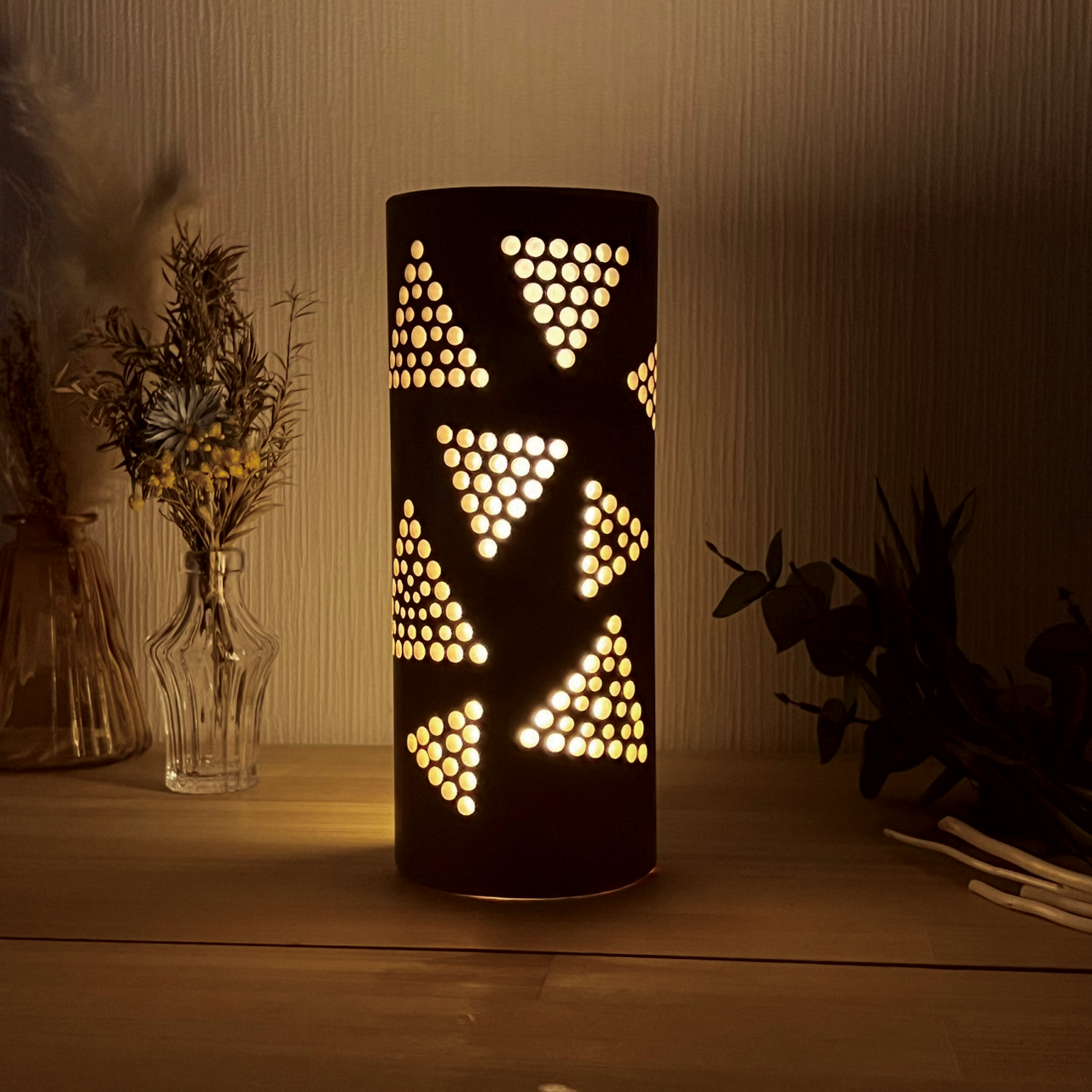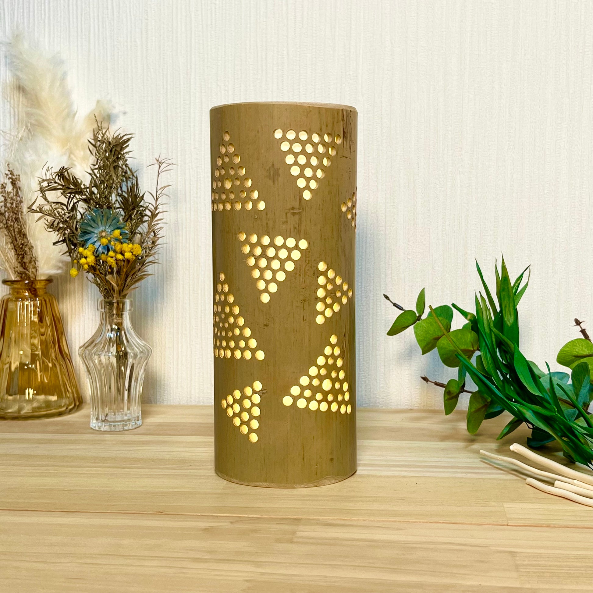 USBスイッチ付きライト(調光付き)は、光量が強い為、竹灯籠の高さ・柄の複雑さが増しても、灯した時に柄がハッキリと見えます。