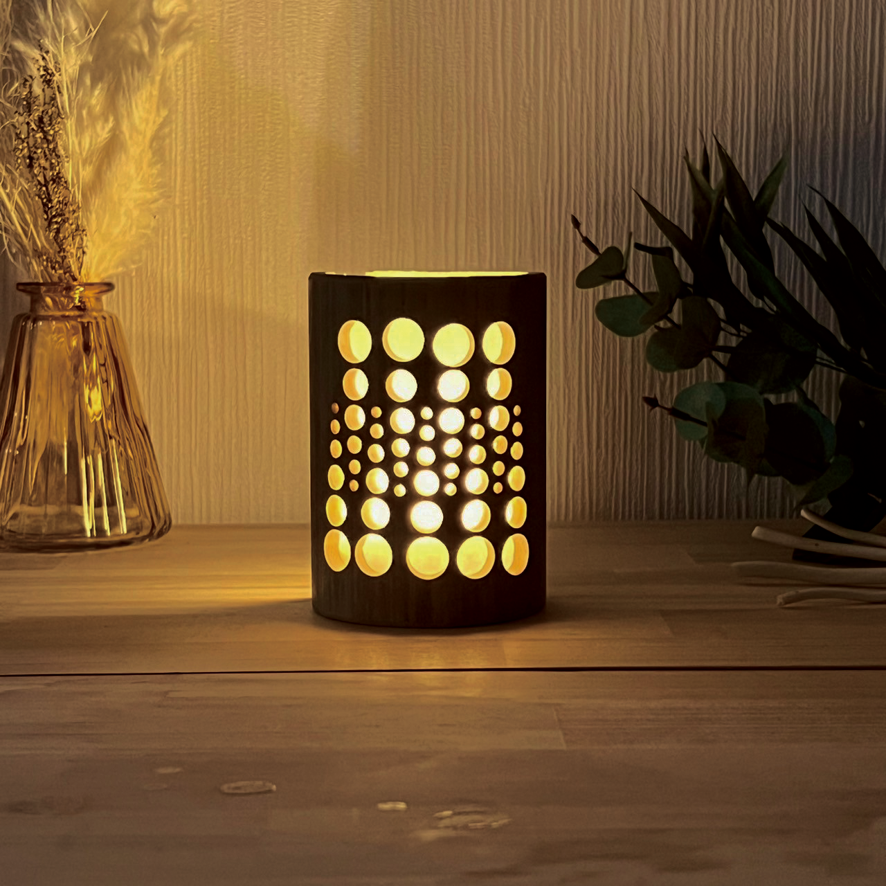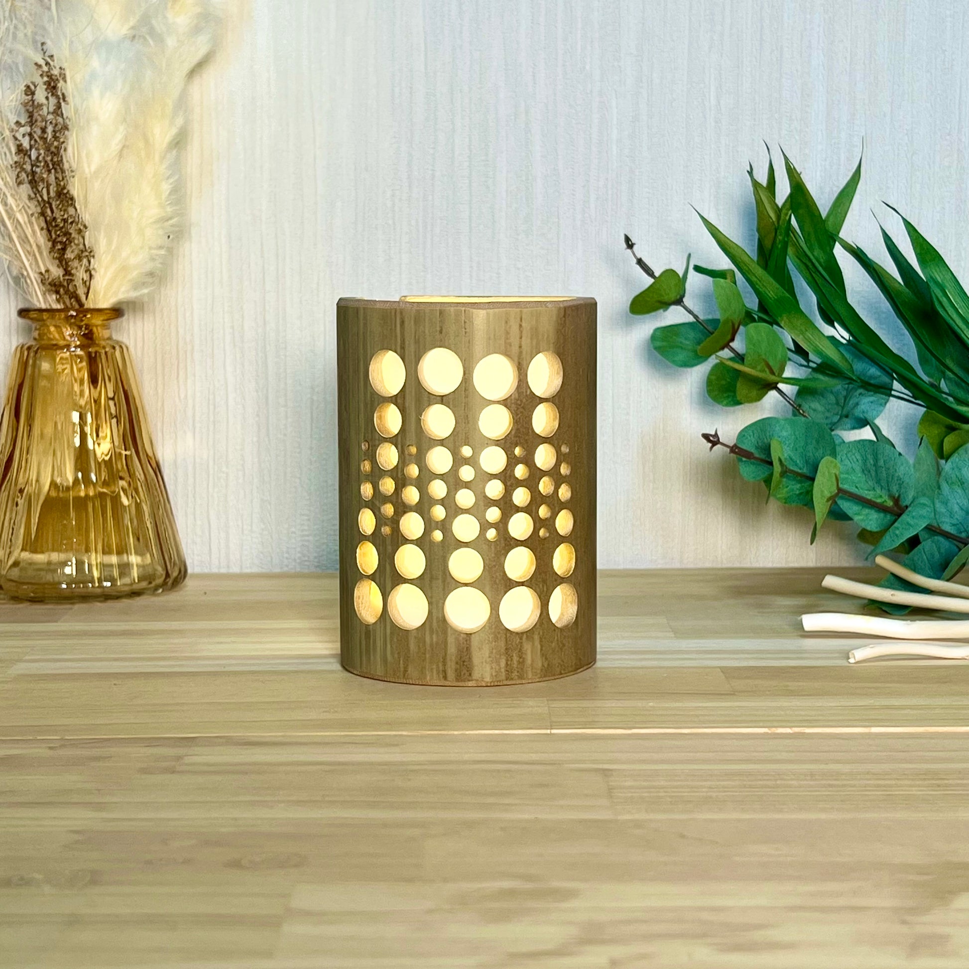USBスイッチ付きライト(調光付き)は、光量が強い為、竹灯籠の高さ・柄の複雑さが増しても、灯した時に柄がハッキリと見えます。