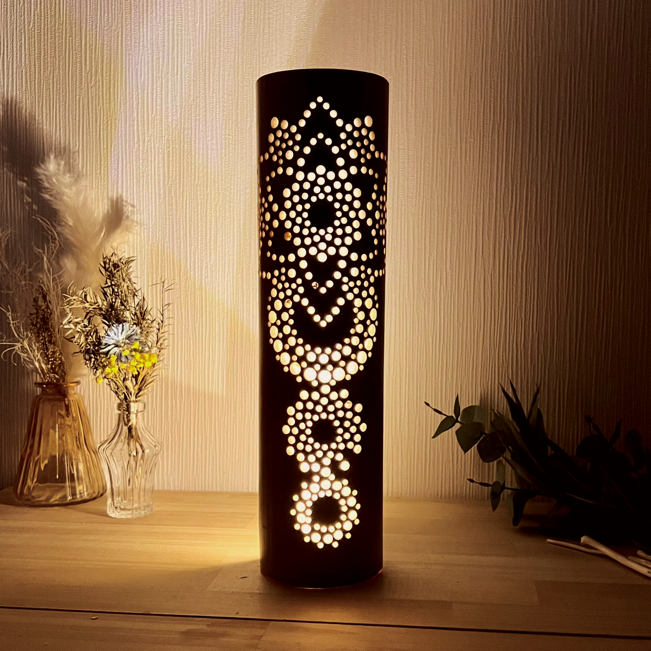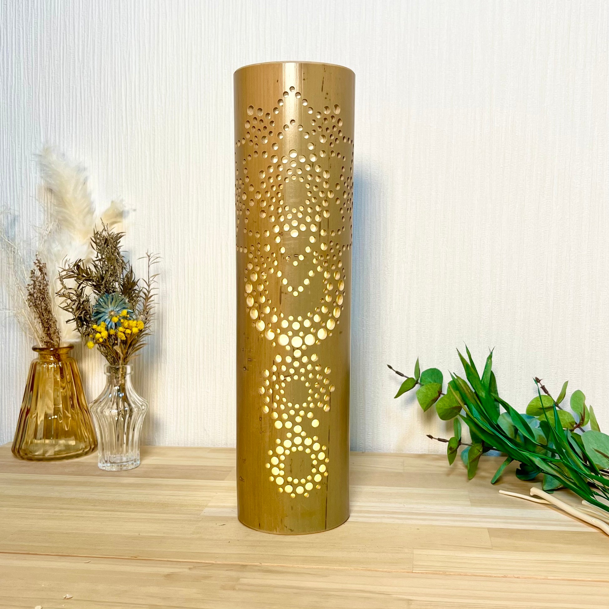 USBスイッチ付きライト(調光付き)は、光量が強い為、竹灯籠の高さ・柄の複雑さが増しても、灯した時に柄がハッキリと見えます。