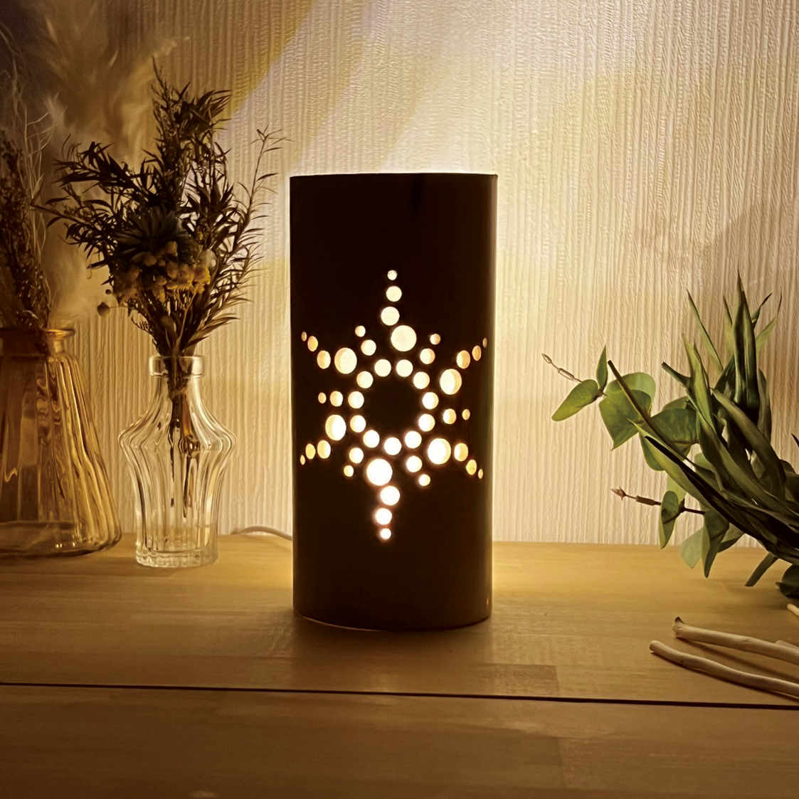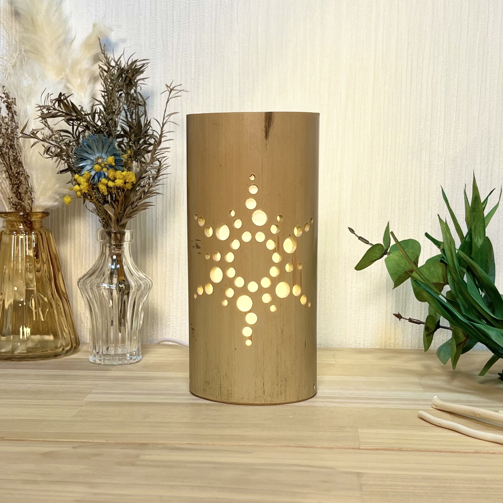 USBスイッチ付きライト(調光付き)は、光量が強い為、竹灯籠の高さ・柄の複雑さが増しても、灯した時に柄がハッキリと見えます。