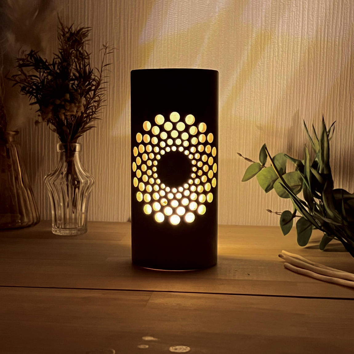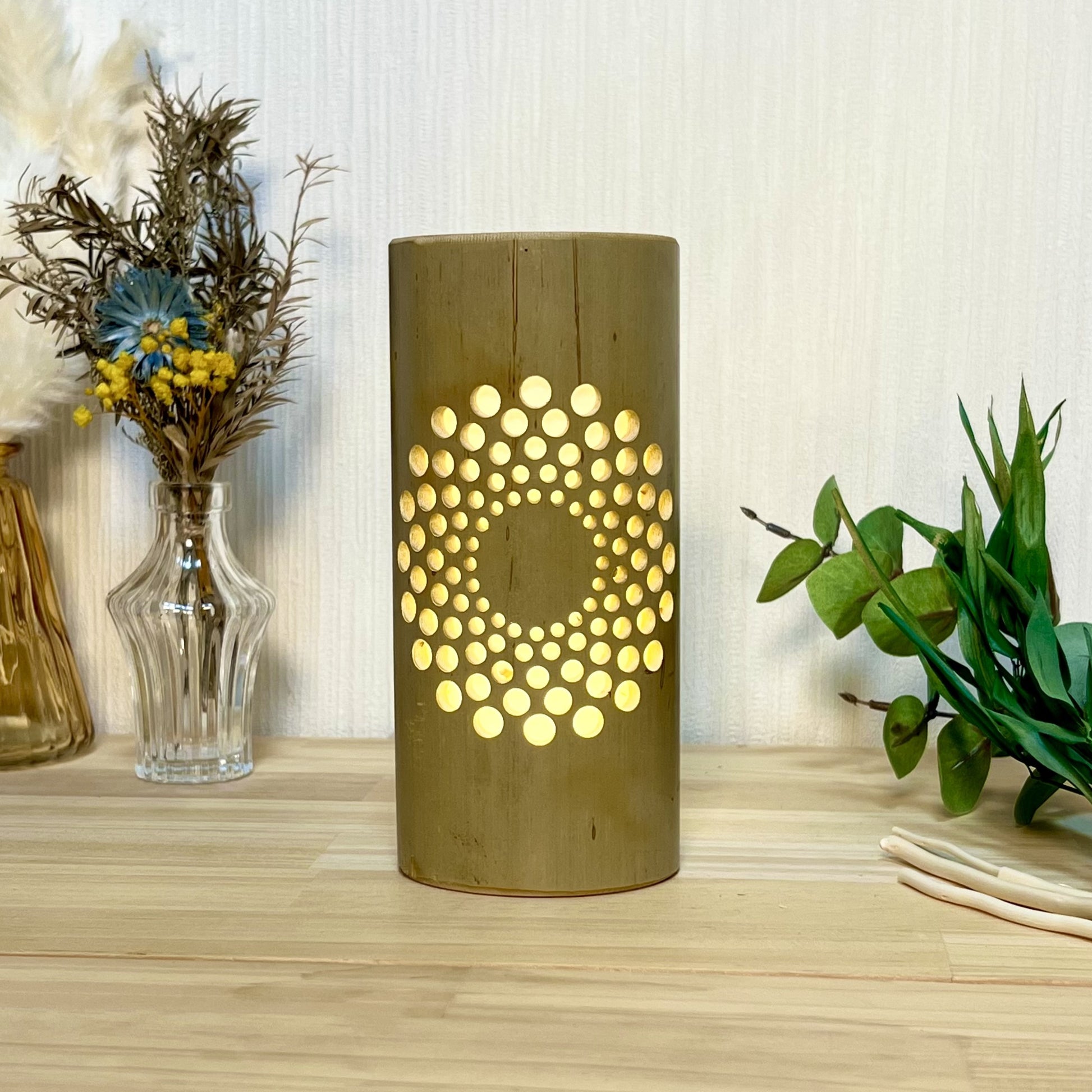 USBスイッチ付きライト(調光付き)は、光量が強い為、竹灯籠の高さ・柄の複雑さが増しても、灯した時に柄がハッキリと見えます。