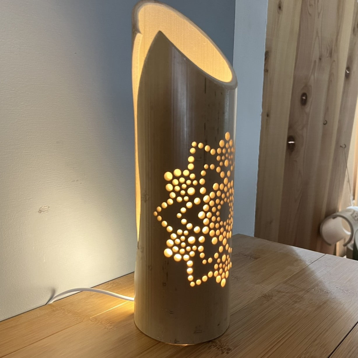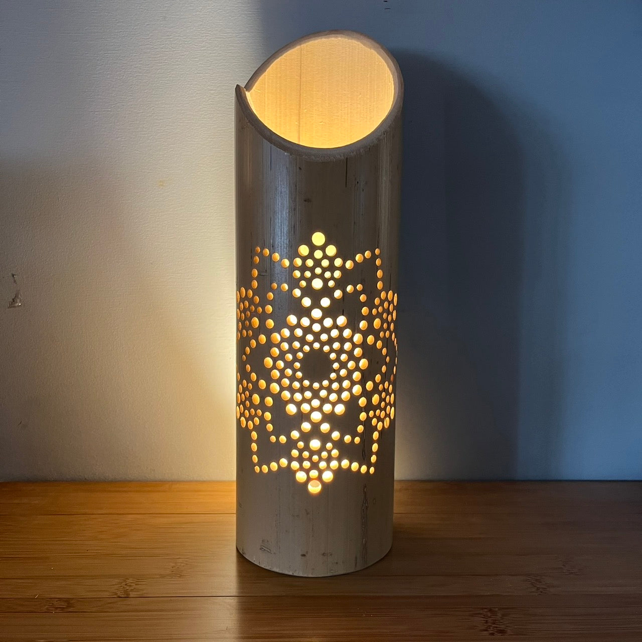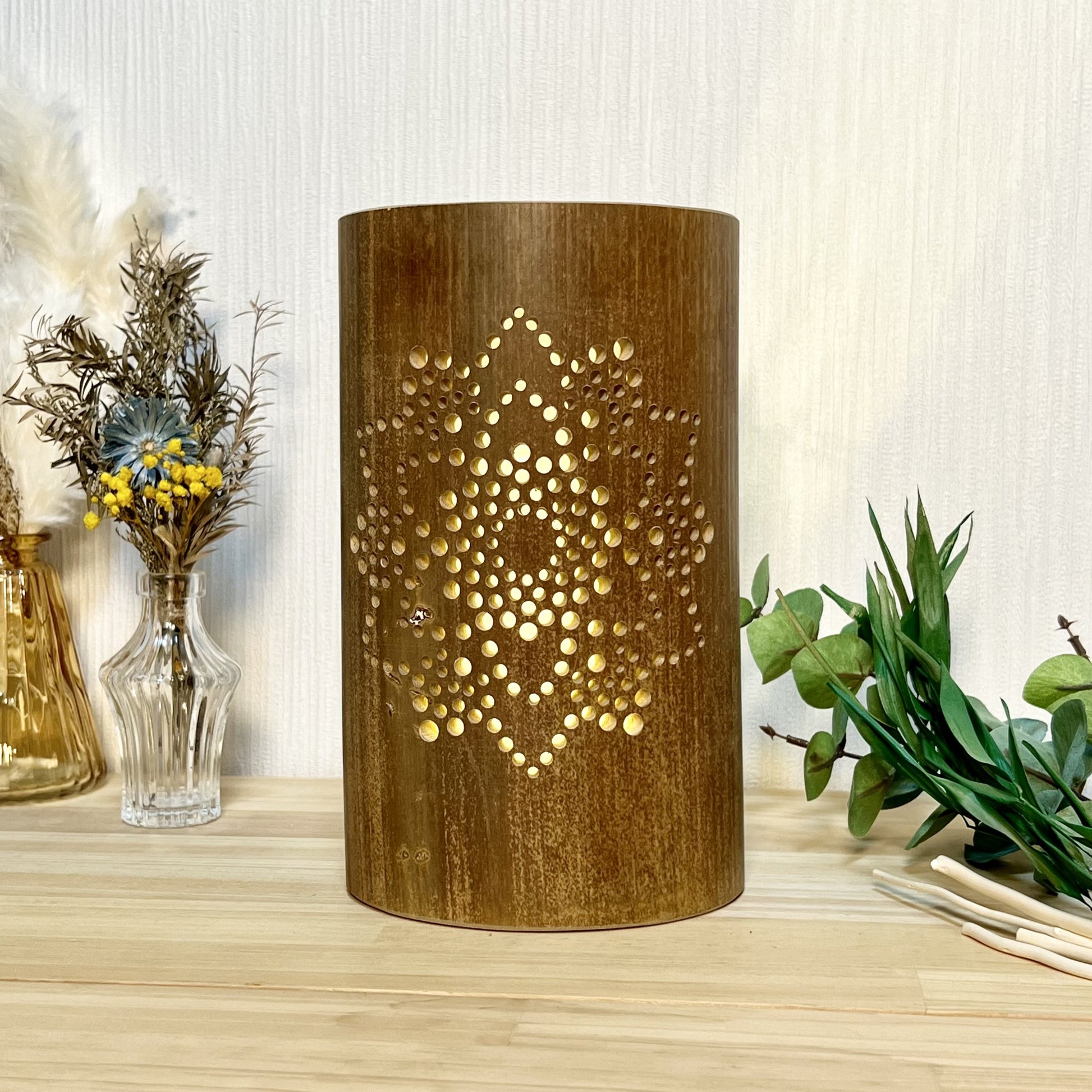 USBスイッチ付きライト(調光付き)は、光量が強い為、竹灯籠の高さ・柄の複雑さが増しても、灯した時に柄がハッキリと見えます。