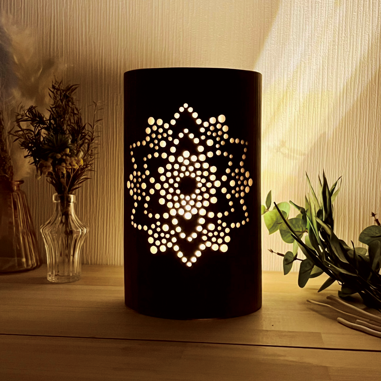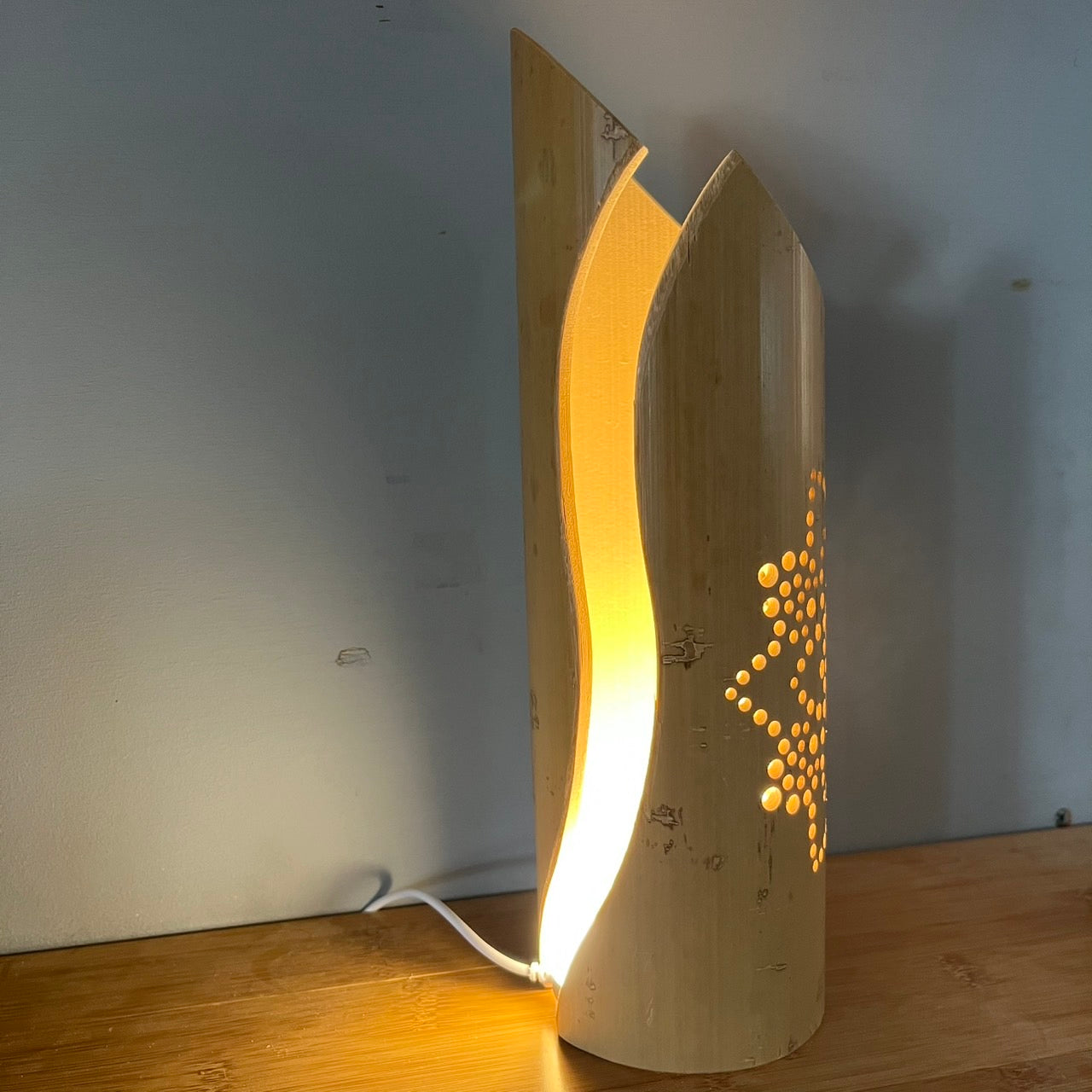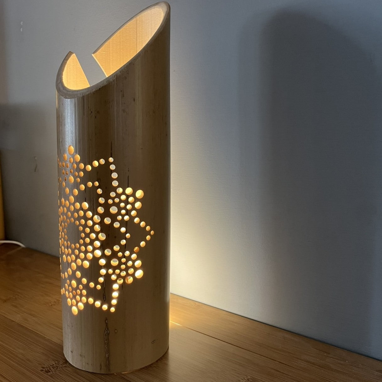 USBスイッチ付きライト(調光付き)は、光量が強い為、竹灯籠の高さ・柄の複雑さが増しても、灯した時に柄がハッキリと見えます。
