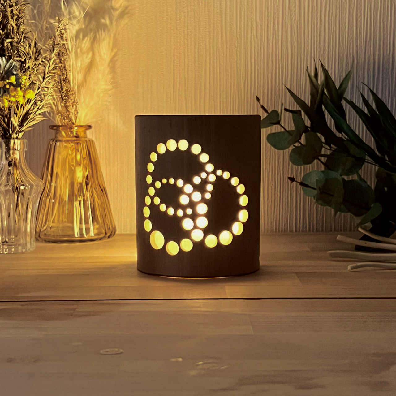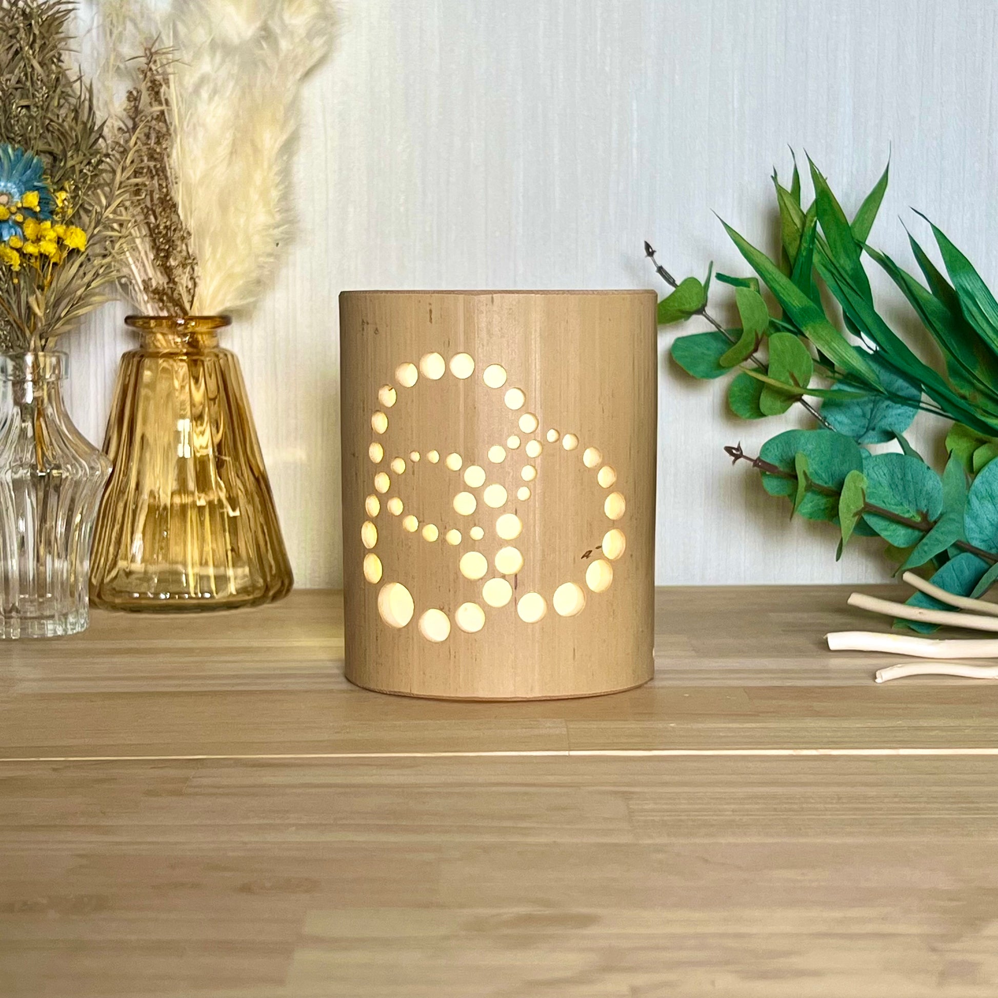 USBスイッチ付きライト(調光付き)は、光量が強い為、竹灯籠の高さ・柄の複雑さが増しても、灯した時に柄がハッキリと見えます。