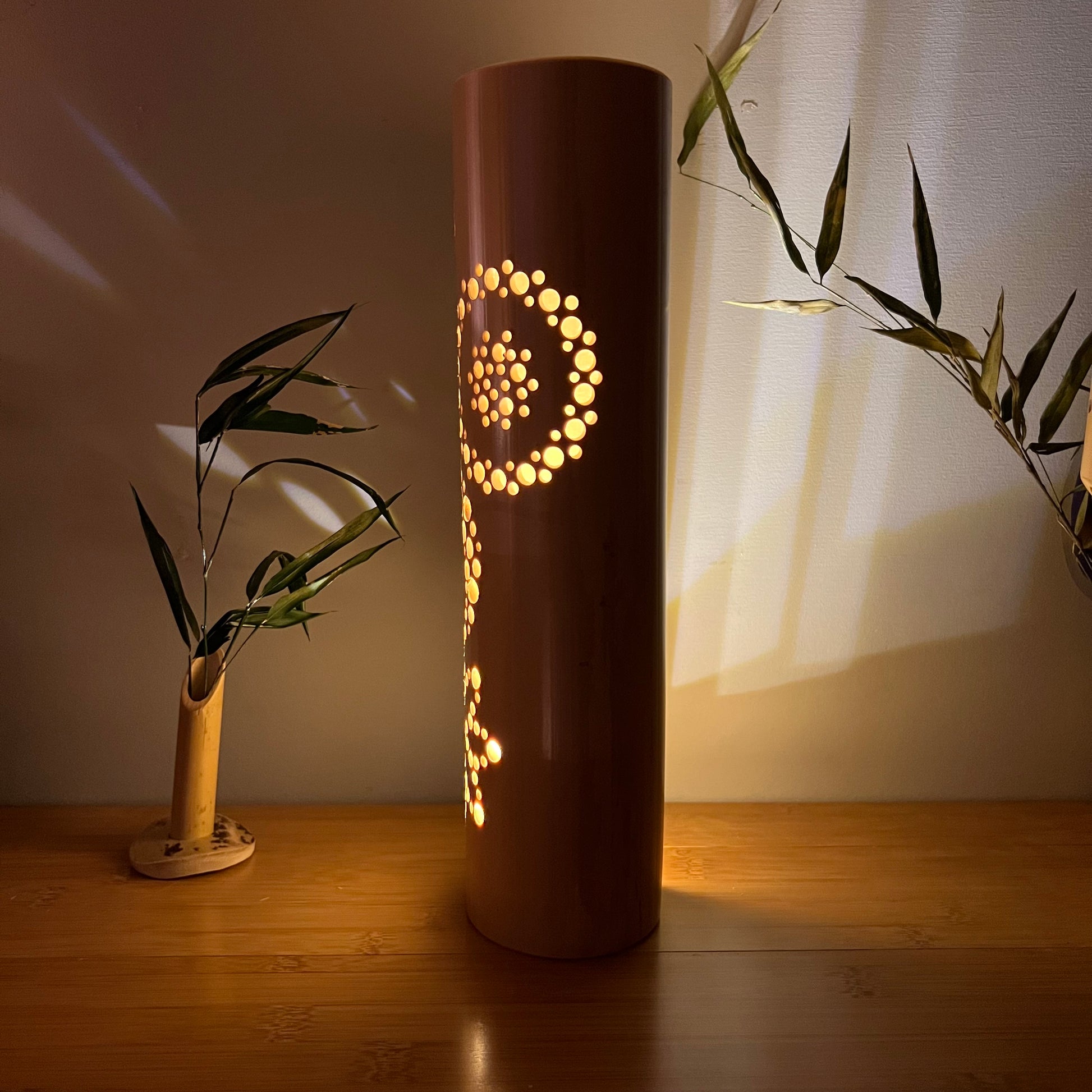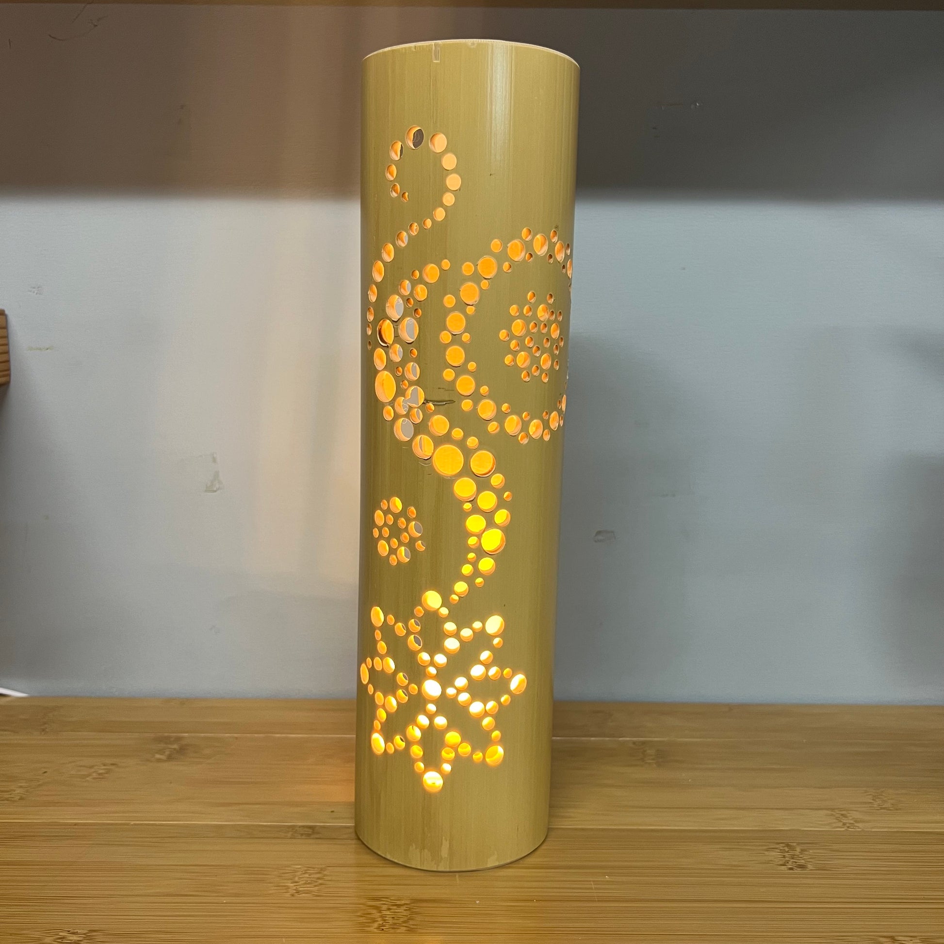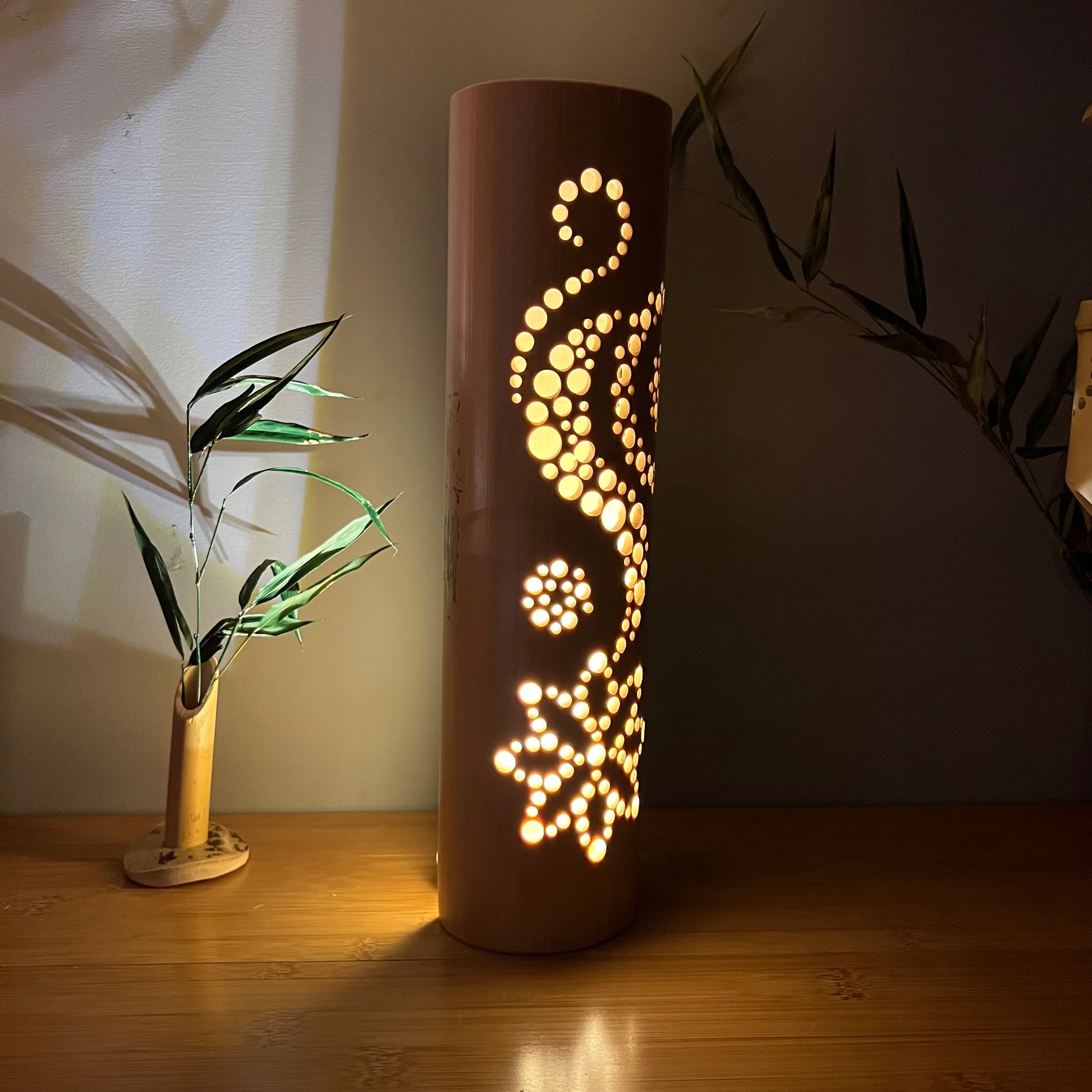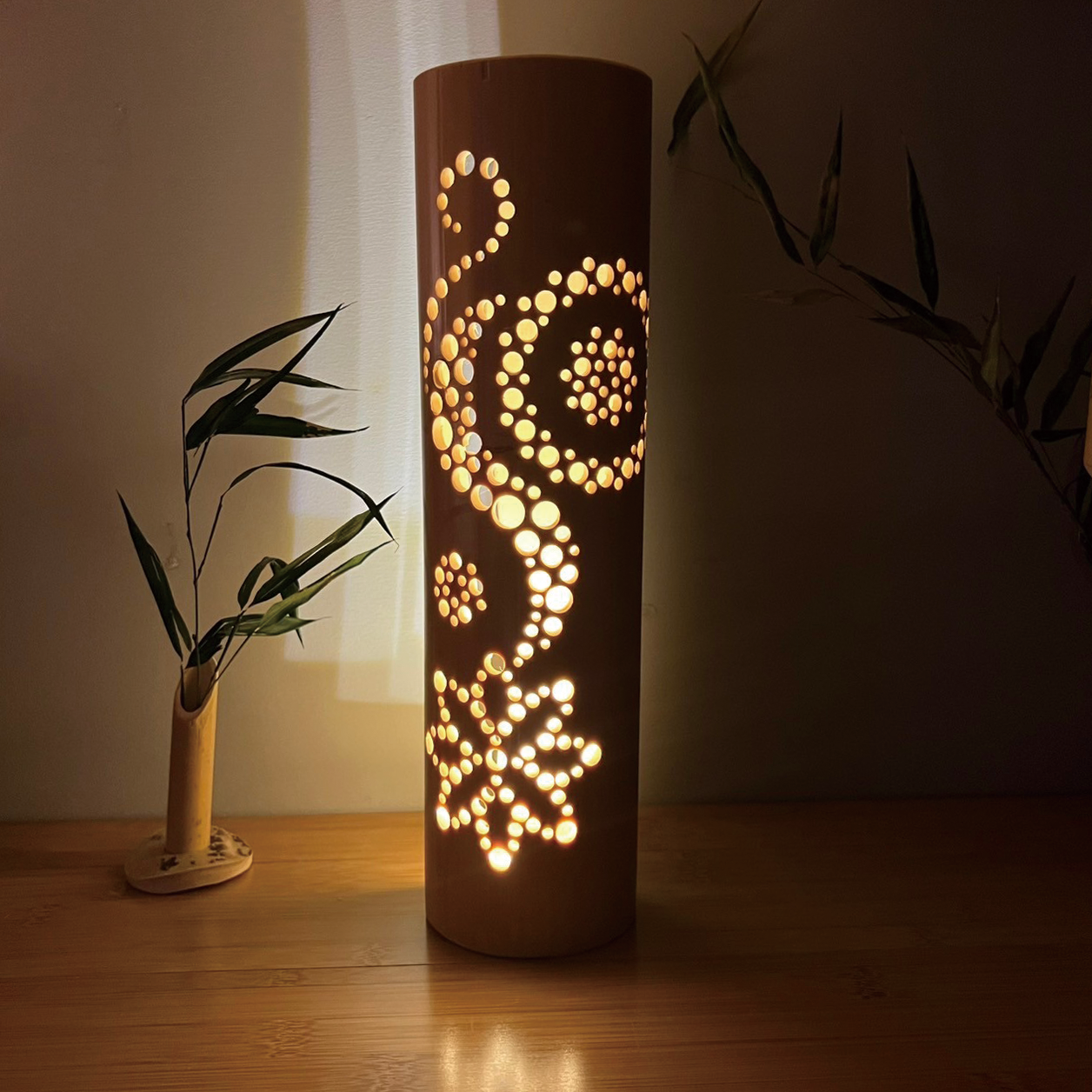 USBスイッチ付きライト(調光付き)は、光量が強い為、竹灯籠の高さ・柄の複雑さが増しても、灯した時に柄がハッキリと見えます。