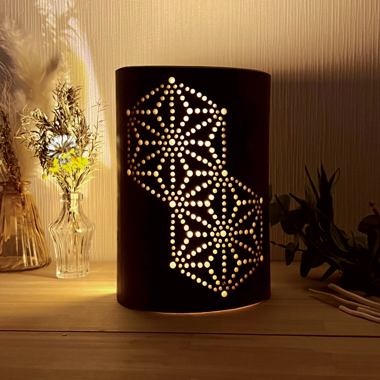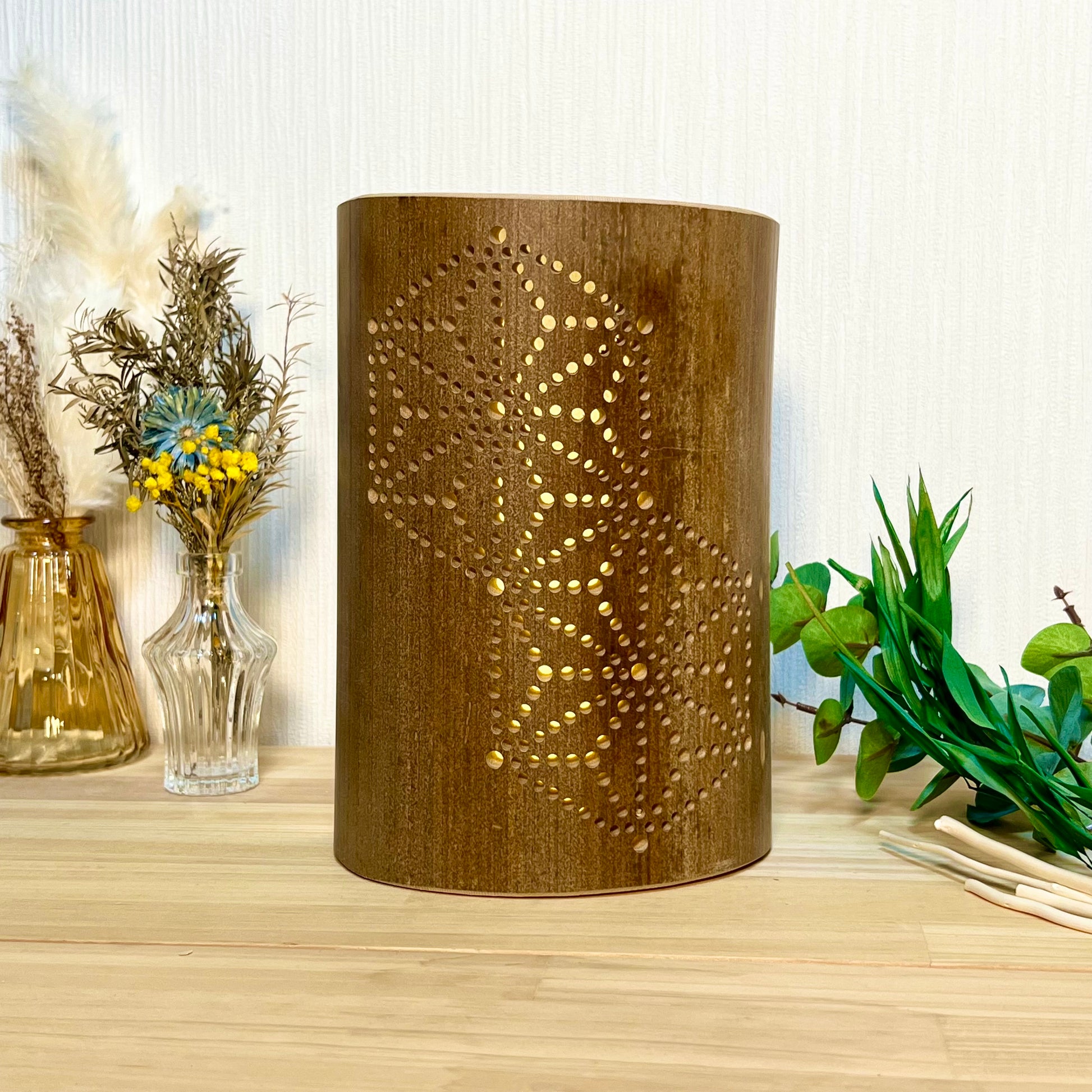 USBスイッチ付きライト(調光付き)は、光量が強い為、竹灯籠の高さ・柄の複雑さが増しても、灯した時に柄がハッキリと見えます。