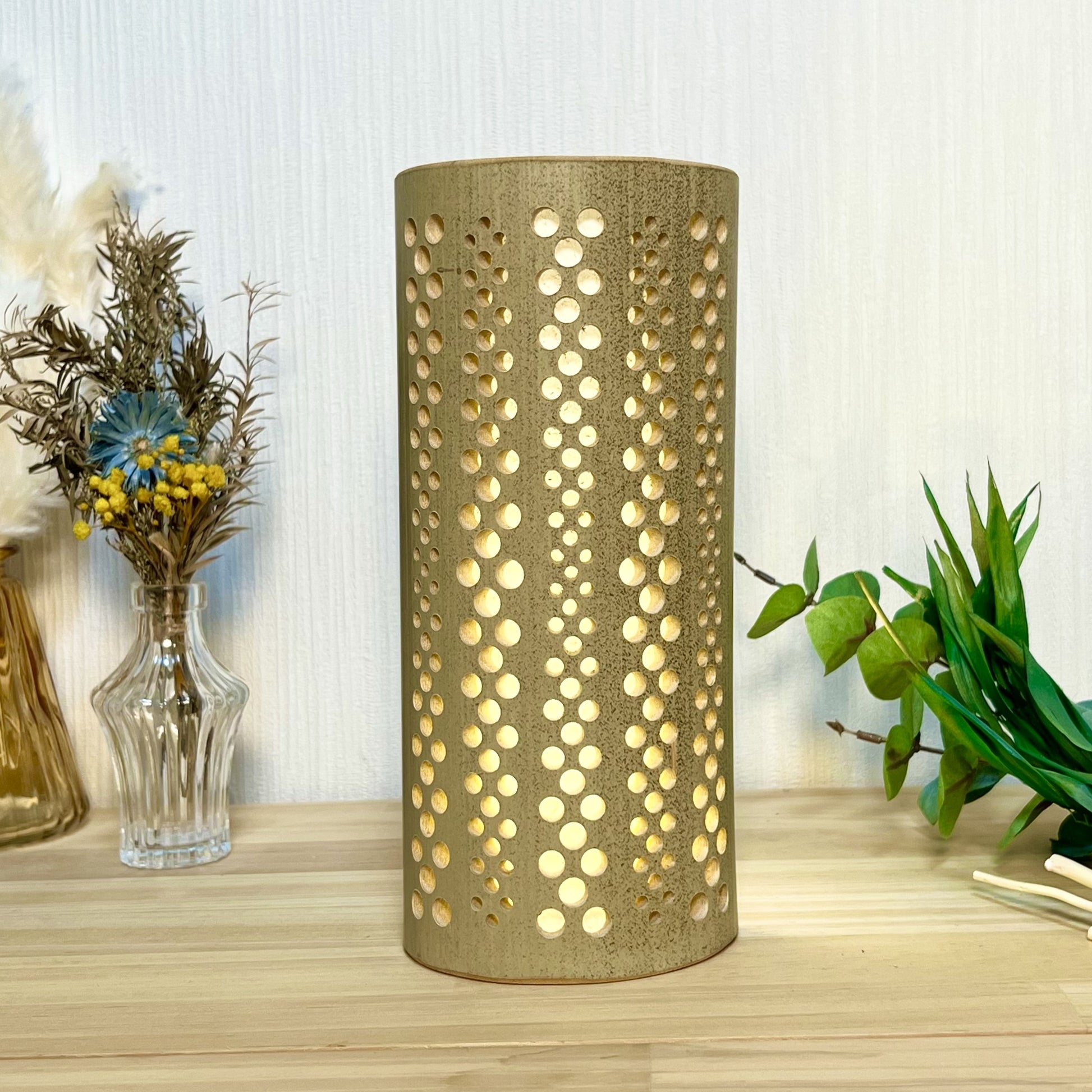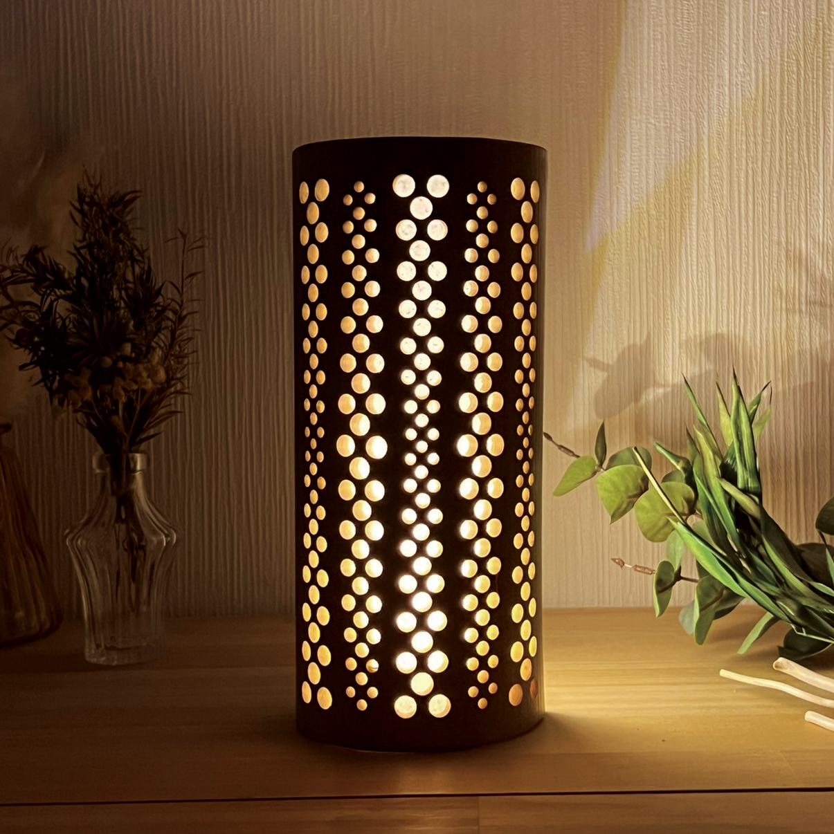 USBスイッチ付きライト(調光付き)は、光量が強い為、竹灯籠の高さ・柄の複雑さが増しても、灯した時に柄がハッキリと見えます。