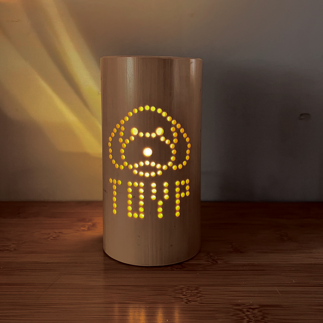 USBスイッチ付きライト(調光付き)は、光量が強い為、竹灯籠の高さ・柄の複雑さが増しても、灯した時に柄がハッキリと見えます。